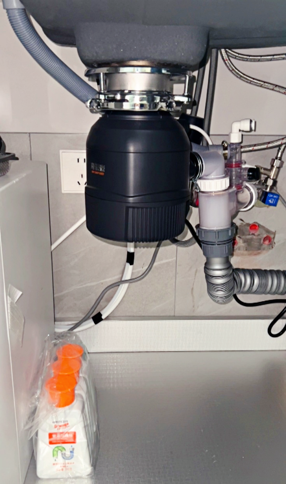 旧款的机身比较大,安装后橱柜空间略显拥挤。而D66的小巧设计让我惊喜——占位更小,但性能反而更强。对于小户型厨房来说,这点非常友好,安装后还能轻松收纳其他清洁工具。