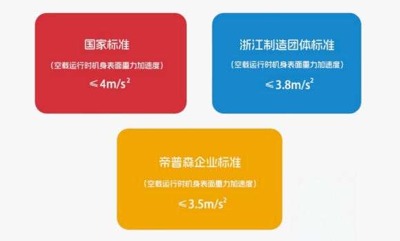 在此基础上,浙江制造团体标准进一步提高了要求,将该数值限定在 < 3.8m/s²,体现了地方产业对产品品质的更高追求。而帝普森并未止步于行业标准,而是制定了更为严苛的企业标准,将振动数值严格控制在 < 3.5m/s²。
